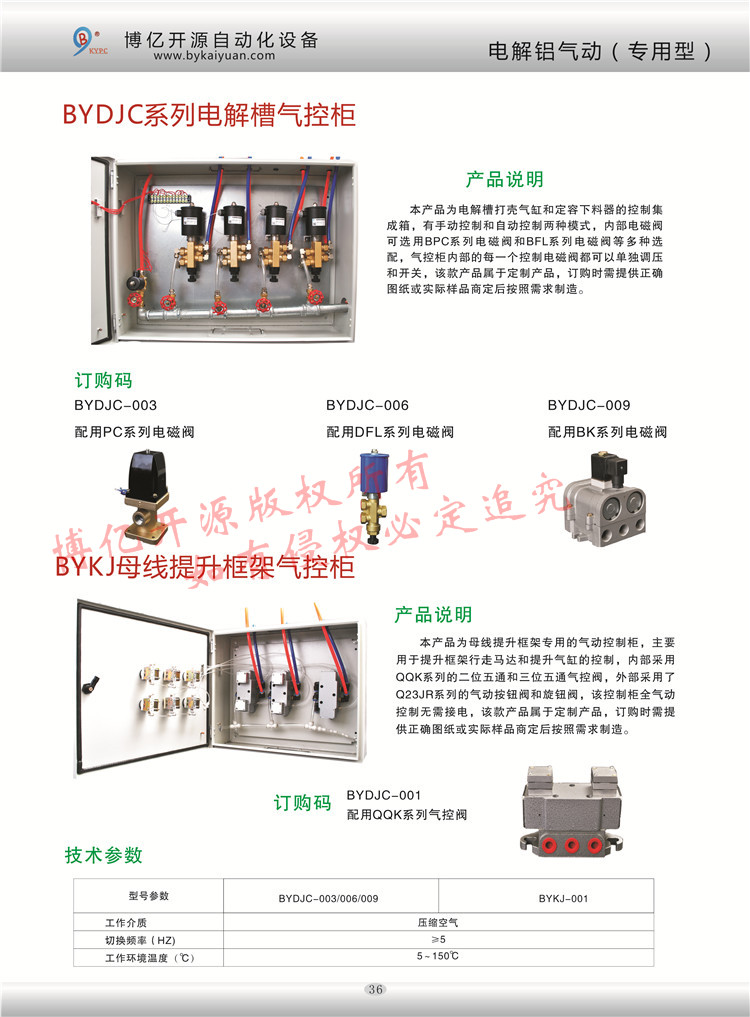 BYDJC電解槽氣控柜為博億開源自主研發(fā)的電解槽控制柜,內(nèi)置打殼氣缸和定容下料器氣缸的控制閥,有槽子的大小可選裝不同的電磁閥進(jìn)行控制,已廣泛用于各大鋁廠,訂購熱線:0371-85618561。