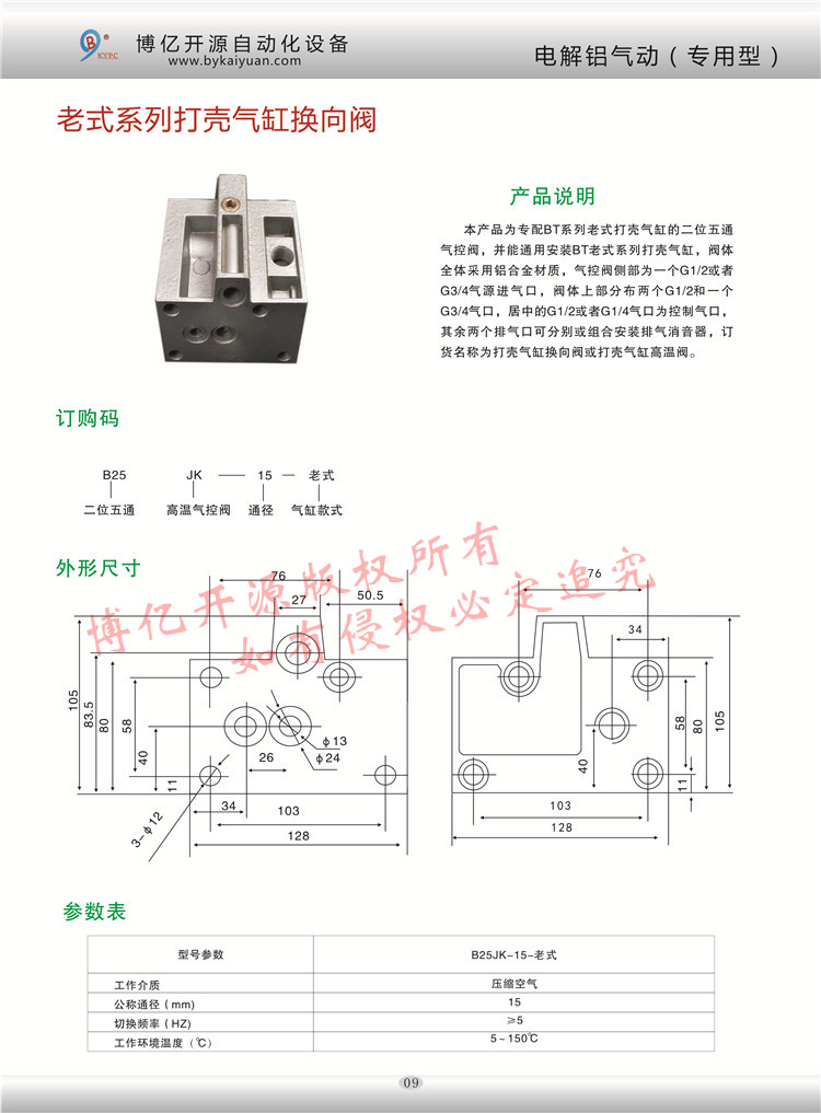 【產(chǎn)品材料】:閥體整體為鋁合金材質(zhì),內(nèi)部采用耐高溫密封件活塞