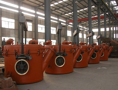 1、直接傾倒轉(zhuǎn)注方式俗稱“小瀑布”鋁液轉(zhuǎn)注,是傳統(tǒng)的電解鋁液抬包轉(zhuǎn)注方式。電解鋁液槽中的原鋁液抽到真空抬包中后,經(jīng)抬包汽車運輸至鑄造車間,通過起重機配合以及在真空抬包傾轉(zhuǎn)系統(tǒng)的作用下(手動搖輪或電動),隨著抬包包體的逐漸傾斜,鋁液由抬包的出鋁管流出,流至爐子的受鋁口或移動流槽注入熔煉爐中。