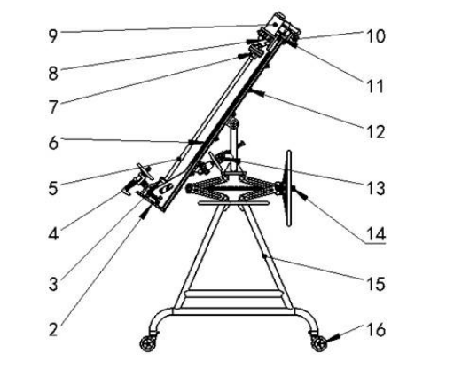 4.清理機支架上部裝有高度調整裝置,底部裝有萬向輪。