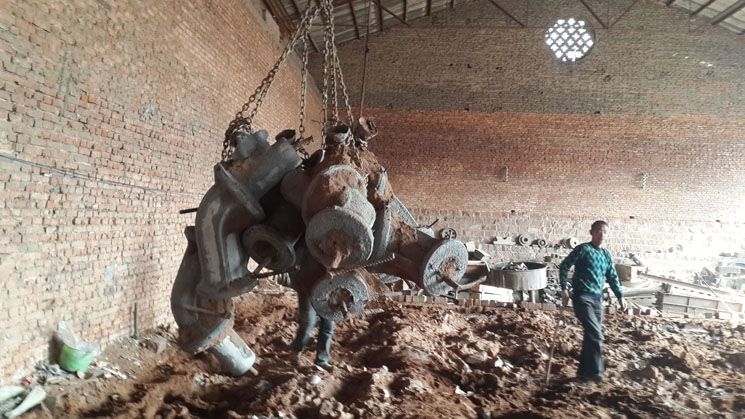 4、鑄完停12個小時開始刨吸鋁管
